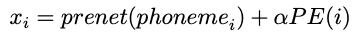 그런데 NMT와의 차이가 하나 있는데, NMT은 어차피 소스와 타겟이 동일한 language space안에 있는데 반해, TTS에서 소스는 텍스트, 타겟은 멜스펙트로그램임. 따라서 fixed positional encoding은 적절하지 않을 수 있음. 따라서 positional encoding에 웨이트를 곱하고 이를 같이 훈련을 통해서 구함.